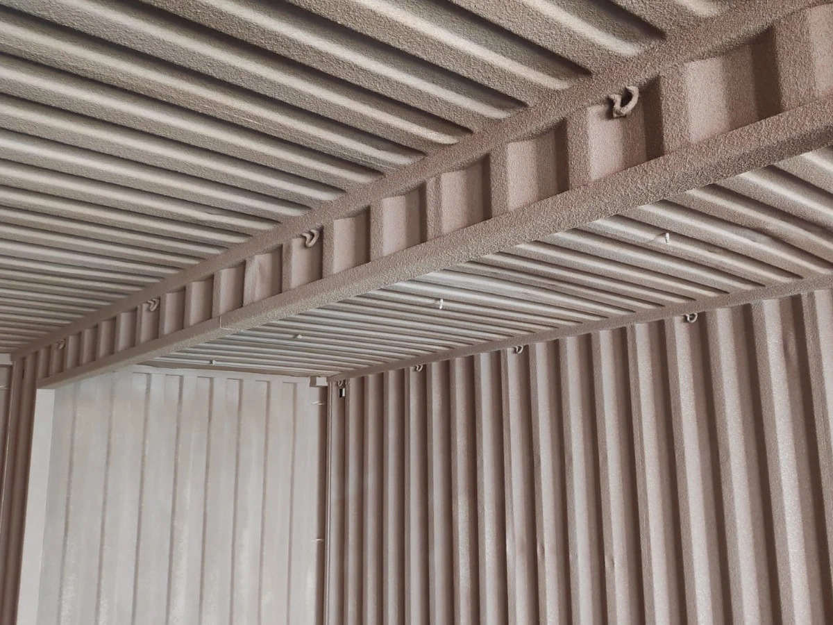 SOLIEGE est un enduit naturel de liège pour répondre aux problématiques de paroi froide, rupteur de pont thermique, isolation phonique et thermique. SOLIEGE est une solution reconnue efficace dans l’aménagement des conteneurs maritimes pour lutter contre la condensation. Facile à poser par son procédé de projection, idéal sur surface à forme complexe comme les parois en acier des containers maritimes. Liège projeté SOLIEGE pour isolation de containers